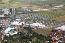 Hessentag has undergone many changes.[2] Originally it was held on one weekend (three days), but grew to a week, including both weekends. It connects Hessian culture, tradition and modern lifestyle. The first focus of the event was presentation of traditions, especially the wide variety of costumes in Hesse and also the costumes of the new citizens who came after 1945. Concerts by international pop groups have become a featured part of the program. The Landesausstellung (State Exhibition) is shown in mobile halls, presenting the state government, the parliament, parliamentary groups, various state agencies and organizations, associations and clubs. Regions of Hesse are presented mostly from a tourist's point of view. Since 1971, for each Hessentag a couple (Hessentagspaar) is elected to represent it. Since 1993, a motto for the event was chosen by the hosting town, also a logo. The event is traditionally closed by a parade.[3]