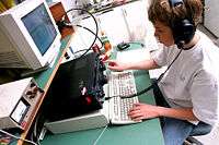 The Amateur Radio Call Sign Receiving Test use a software program called RufzXP that generates a score for each competitor. Rufz is the abbreviation of the German word "Rufzeichen-Hören" which means "Listening of Call Signs". In the RufzXP program, competitors listen to an amateur radio call sign sent in Morse code and must enter that callsign with the computer keyboard. If the competitor types in the call sign correctly, their score improves and the speed at which the program sends subsequent call signs increases. If the competitor types in the call sign incorrectly, the score is penalized and the speed decreases. Only one call sign is sent at a time and the event continues for a fixed number of call signs (usually 50). Competitors can choose the initial speed at which the program sends the Morse code, and the winner is the competitor with the highest generated score.[1]