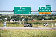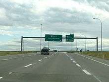 Highway 2 is a core route in the National Highway System of Canada. The speed limit along most parts of the highway between Fort Macleod and Morinville is 110 km/h (68 mph) and in urban areas, such as through Claresholm, Nanton, Calgary and Edmonton, it ranges from 50 km/h (31 mph) to 100 km/h (62 mph). During the winter, accidents are common on the stretch of the highway between Calgary and Edmonton as the weather can change rapidly and drivers underestimate the conditions, overwhelming emergency services attempting to respond.[2] As the main north-south access in Alberta, Highway 2 is the preferred path of the CANAMEX Corridor.[3] Between Fort Macleod and Edmonton, Highway 2 maintains no fewer than four lanes of traffic and is largely a controlled-access freeway between Okotoks and Edmonton, with improvements underway to eliminate remaining at-grade crossings.[4]