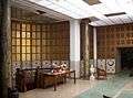 A drop-ceiling has been installed in the columbarium building, thus eliminating many of the ornate architectural features of the interior. In the course of the addition of the drop-ceiling, all of the skylights and windows that once were used to provide natural lighting to the interior, have been covered, and electric fluorescent lights have been installed.