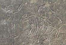 From the Neolithic onwards, images of zoophilia are slightly more common. Examples are found at Coren del Valento, a cave in Val Camonica, Italy, containing rock art dating from 10,000 BCE to as late as the Middle Ages, one depicting a man penetrating a horse,[7] and Sagaholm, a Bronze Age cairn in Sweden where several petroglyphs have been found with similar scenes.[8]