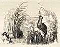 Alexander Fussell created most of the drawings for the book. Yarrell thanks Fussell in his Preface for "nearly five hundred of the drawings on wood here employed", and John Thompson (1785–1866) and his sons[lower-alpha 3] for the "very long series of engravings" of the drawings. He also thanks his printers, Messrs. Bentley, Wilson and Fley for their care and skill. The pen for the remaining drawings, if any (the title page asserts there are 520 in the book), is not stated.[P 12] As well as the figures of birds, there are 59 tail-pieces (following Bewick, small woodcuts to fill in the spaces at ends of articles), of which some are whimsical, like Bewick's, but many illustrate anatomical details, especially breastbones and windpipes, and others, although decorative, realistically depict aspects of bird behaviour or human interaction with birds.[6] For example, the tail-piece for the "Jack Snipe" shows a bittern among reeds, swallowing a frog, while that for the "Common Bittern" shows "a mode of shooting an Eagle from a pit".