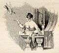 Whimsical tail-piece of a lady receiving her pigeon post