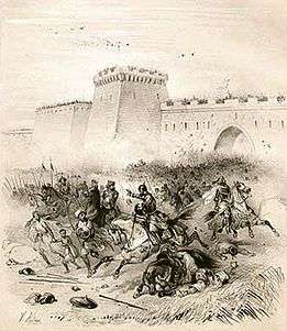 In 898 the Abbey of Farfa was sacked by "Saracens", who burned it to the ground.[31] Abbot Peter of Farfa managed to organise the community's escape and salvaged its library and archives. In 905, the monastery was again attacked and destroyed by "Saracens".[32] Other areas of historical Saracen presence in central and southern Italy include, Saracinesco, Ciciliano and Nocera Inferiore.