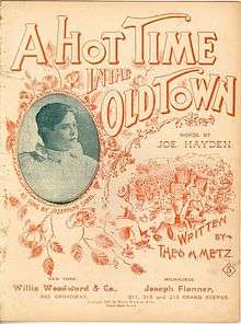 The songs played most frequently at Michigan football games during the first decade of the Yost era were "The Yellow and Blue" (with lyrics by Michigan English and Latin professor, Charles Mills Gayley) and a version of the popular ragtime song, "There'll Be a Hot Time in the Old Town Tonight" with special Michigan lyrics.[108] The latter was considered to be Michigan's school song during the early 1900s.[109]