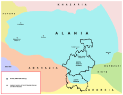 The territory of North Ossetia has been inhabited for thousands of years, being both a very fertile agricultural region and a key trade route through the Caucasus Mountains. The ancestors of the present inhabitants were a people called the Alans,[1] a warlike nomadic people who spoke an Iranian language.[1] Part of the Alan people eventually settled in the Caucasus around the 7th century AD. By about the 9th century, the kingdom of Alania had arisen and had been converted to Christianity by Byzantine missionaries. An archbishopric was established in western Alania under the authority of the Patriarchate of Constantinople, and many large churches were constructed (Zelenchuk churches, Shoana Church, Senty Church). Alania became a powerful state in the Caucasus, profiting greatly from the legendary Silk Road to China, which passed through its territory.