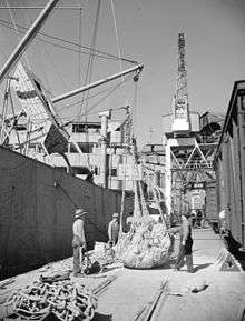 And at that time they had donkey engines on scows [barges]. The ships had stern ports and everything was hauled in with the donkey through or over the stern. Of course, at that time the Indians from the North Shore [of Burrard Inlet] did all that work.[6]:81