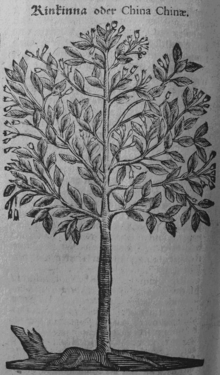 Spanish missionaries found that fever was treated by Amerindians near Loxa (Peru) with powder from Peruvian bark (later established to be from any of several trees of genus Cinchona).[38] It was used by the Quechua Indians of Peru to reduce the shaking effects caused by severe chills.[39] Jesuit Brother Agostino Salumbrino (1561–1642), who lived in Lima and was an apothecary by training, observed the Quechua using the bark of the cinchona tree for that purpose. While its effect in treating malaria (and hence malaria-induced shivering) was unrelated to its effect in controlling shivering from cold, it was nevertheless effective for malaria. The use of the “fever tree” bark was introduced into European medicine by Jesuit missionaries (Jesuit's bark).[40] Jesuit Bernabé de Cobo (1582–1657), who explored Mexico and Peru, is credited with taking cinchona bark to Europe. He brought the bark from Lima to Spain, and then to Rome and other parts of Italy, in 1632. Francesco Torti wrote in 1712 that only “intermittent fever” was amenable to the fever tree bark.[41] This work finally established the specific nature of cinchona bark and brought about its general use in medicine.[42]