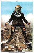1879 cartoon depicting William Henry Vanderbilt as "The Modern Colossus of (Rail) Roads."