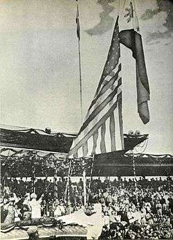 The Flag of the United States of America is lowered while the Flag of the Philippines is raised during the Independence Day ceremonies on July 4, 1946