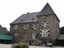 The castle dates to 1333, and its owners were vassals of the Duchy of Jülich. In the 15th to 17th centuries the manor house and gate tower were built, both of which have survived. In 1818, when the region was part of the Prussia county of Düren, the castle and its estates were sold to private buyers. In 1893 it was bought by Richard Schleicher, who also bought the nearby estate of Schönthal. The property later changed hands several times.