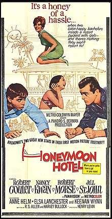 Honeymoon Hotel is a 1964 American comedy film, directed by Henry Levin for Metro-Goldwyn-Mayer. It stars Robert Goulet, Nancy Kwan, Robert Morse, and Jill St. John.[1]