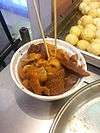 | Fishballs are always served in curry and sold on skewer.[39] |