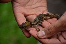 - ↑ Nielsen SV, Bauer AM, Jackman TR, Hitchmough RA, Daugherty CH (2010). "New Zealand geckos (Diplodactylidae): Cryptic diversity in a post-Gondwanan lineage with trans-Tasman affinities.". Mol Phylogenet Evol. 59 (1): 1–22. doi:10.1016/j.ympev.2010.12.007. PMID 21184833.