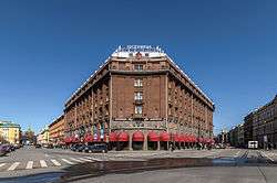 Hotel Astoria (Russian: гости́ница «Асто́рия») is a five-star hotel in Saint Petersburg, Russia, that first opened in December 1912. It has 213 bedrooms, including 52 suites, and is located on Saint Isaac's Square, next to Saint Isaac's Cathedral and across from the historic Imperial German Embassy. Hotel Astoria, along with its neighboring sister hotel, Angleterre Hotel, is owned and managed by Rocco Forte Hotels and is a member of The Leading Hotels of the World. The hotel underwent a complete refurbishment in 2002.