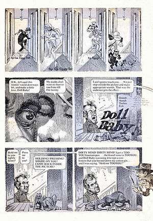 Underground cartoonist Robert Crumb said that the elaborate Davis–Elder cover to the second issue of Humbug "changed his life".[5] In 1958 Crumb and his brother Charles self-published three issues of Foo in imitation of Humbug and Mad.[10] Crumb paid homage to Humbug's detailed cover borders on every cover of his magazine Weirdo from the 1980s.
