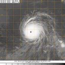Although there were no factors inhibiting the development of Celia, the storm unexpectedly weakened again later on June 23. The storm's eye rapidly dissipated and the central dense overcast became asymmetric. Forecaster Todd Kimberlain at the NHC referred to the unexplained shifts in strength as "puzzling."[17] However, as suddenly as the weakening took place, strengthening ensued. Very strong convection formed over the center of the storm, with some cloud tops being as cold as −86 °C (−123 °F) but no eye had reformed by the morning of June 24.[18] Throughout the day, Celia became increasingly organized, with the eye fully reforming and the structure becoming more symmetrical.[19] Rapid intensification soon followed as the storm reached Category 4 status,[20] becoming one of only a handful of tropical cyclones to do so during the month of June in the eastern Pacific.[21] That evening, the storm further intensified into a Category 5 hurricane, the second storm to reach this strength during June in the Eastern Pacific basin on record.[22] Hurricane Celia attained its peak intensity around 0000 UTC with sustained winds of 160 mph (260 km/h) and a barometric pressure estimated at 921 mbar (hPa; 27.2 inHg).[1] The storm also displayed a well-defined eye estimated to be 17 to 23 mi (27 to 37 km) in diameter.[23]