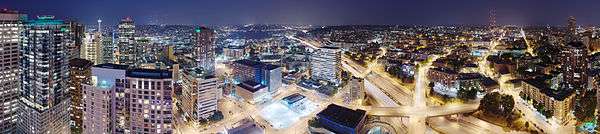 South of the Ship Canal Bridge Interstate 5 separates the Eastlake and Cascade neighborhoods from the Capitol Hill neighborhood, and separates Downtown Seattle from the Capitol Hill and First Hill neighborhoods. Its construction necessitated the demolition of significantly developed areas and cut off walking commutes to downtown for many First Hill residents, who "were by far the most vociferous critics of the proposed route,"[66] but far from the only ones. Architect Paul Thiry said in the early 1970s, "It was with the Freeway, cutting through the very heart of the city, that Seattle began taking one of its wrong turns and started to lose its identity as a city." He proposed a lid extending from Columbia Street north to Olive Way, roughly the entire length of downtown.[67]