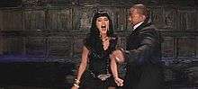 The music video was filmed in December 2009. It was directed by Paul "Coy" Allen, who directed "Morning After Dark" and "Say Something".[1][2] Timbaland told MTV that he wanted the video to be serious and maybe have Perry playing his guardian angel: "I wanna make something deep, I don't know if I wanna make it like a relationship. I wanna make it like she saved my life with whatever depression I was going through, whether it be drug depression, weight-loss depression — something..... Will she be around if I go through this again?".[1] The song debuted with its video premiere on January 18, 2010 on UK music channels,[3] charting at number one on many of the music channel video charts. The video, rather than focusing on a serious relationship, as mentioned above, focuses on the love story between a jewel thief (Julian Graham) and an art thief (Nadine Heimann), interspersed with Perry and Timbaland singing. In the original video Katy Perry appears in black girdle and black leather as in underwear, while Timbaland in the whole part of the clip was in a brown Jacket and with a flat cap on his head. The jewel thief and art thief take note of each other when both are present at an art exhibit opening. The jewel thief steals a necklace, but caches it (rather than trying to remove it from the premises). The jewel thief is later taken in by police for questioning about an art theft, but is released when the art thief secretly returns what she has stolen. As the jewel thief leaves the police station, the art thief is waiting for him outside, and the two join forces (dressed in black clothes and masks) to steal the original necklace and painting from the beginning of the video.