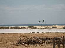 The 0.5 ha Ilhéu de Curral Velho is an unvegetated, heavily eroded, calcareous rock, 15 m in height, lying some 500 m off the southernmost point of Boavista. Because of the islet’s cliffs and the prevailing heavy seas, access is difficult and often impossible. The area on the main island consists of sand-dunes, a lagoon and an oasis with a vegetation dominated by palms, acacias and Tamarix senegalensis. The sandy beaches are important nesting sites for threatened Hawksbill and Loggerhead sea turtles. Lizards found in the area include Chioninia spinalis and Hemidactylus bouvieri. The site was identified as an Important Bird Area (IBA) by BirdLife International because it supports a population of Iago sparrows.[1]