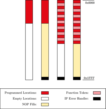 With NOP-Fills, the reliability of a system in case of a disturbed instruction pointer can be improved in some cases. The entire program memory that is not used by the program code is filled with No-Operation (NOP) instructions. In machine code a NOP instruction is often represented by 0x00 (for example, Intel 8051, ATmega16, etc.). The system is kept in a defined state. At the end of the physical program memory, an instruction pointer error handling (IPEH IP-Error-Handler) has to be implemented. In some cases this can be a simple reset.