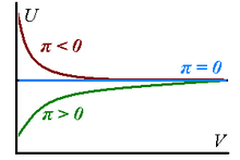 Plot of internal energy vs. volume for gases with different internal pressures