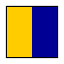 "Man overboard."[lower-alpha 2] (often attached to the man overboard pole on boats).With a sinister hoist, the semaphore flag. | |