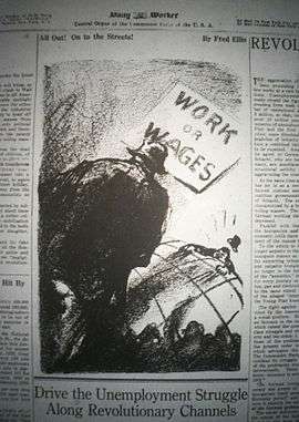 In all the CPUSA claimed that more than 1.25 million workers "demonstrated on the streets in face of the police terror and poisonous propaganda of the American Federation of Labor and Socialist Party."[16] The Communists claimed the event was a success in raising awareness of the problem of mass unemployment in America as well as placing themselves in a position of authority among those so affected: