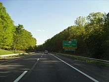 In the meantime, the National Interstate and Defense Highways Act was enacted in 1956, promising a toll-free network of Interstate Highways throughout the nation. The Bureau of Public Roads (BPR) commissioner soon announced that the toll road met all federal Interstate Highway standards,[15] and on August 14, 1957, most of the mainline of the Thruway was incorporated into the system as part of Interstates 87 and 90. Most of the connecting Massachusetts Turnpike was also included, but a more northerly alignment, avoiding the Berkshire Thruway, was proposed by the states of New York and Massachusetts for I-90 through Albany past Pittsfield to East Lee, Massachusetts.[2][16] This alignment would be about 30% shorter than the all-toll alignment, and would provide relief to the four-lane Castleton Bridge on the Berkshire Thruway, which had been built narrower than the rest of the system because of the planned parallel alternate.[17] The BPR objected to the duplication, which would cost over $90 million, and refused to approve this alignment.[18] The eventual route ran southeast from Albany to the Berkshire Thruway at the Nassau interchange, providing Albany with an alternate route and additional bridge, but not offering any savings in distance, and creating a "toll trap" for drivers accessing the Taconic State Parkway from Albany.[19]