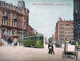 5. 1 2 3 4 5 6 7 8 9 10 11 12 13 "First Streetcars Operated Here in 1860". Syracuse Herald. Syracuse, New York. December 14, 1922.