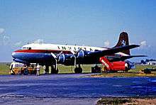 Two Vickers Viking aircraft were purchased from Autair International Airways on 12 February 1965, G-AHPL and G-AHOY. Two Douglas DC-4 aircraft were purchased from British Eagle International Airlines, G-ASPM on 18 February and G-ASPN on 20 February.[2] Crew training took place from 3 March and the first revenue earning flight took place on 20 March when one of the Vikings flew a charter flight to Basle, Switzerland. On 30 March, one of the DC-4s operated the first revenue earning freight, carrying 8 tons (8,100 kg) of lamb carcasses to Metz Airport for the Royal Canadian Air Force.[3]