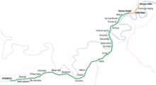 In Queensland, Australia, the Ipswich and Rosewood line refers to the section of the Main Line to Toowoomba that has a regular suburban rail service, extending southwest from the Brisbane central business district.