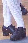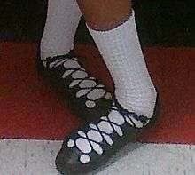 Soft shoes, often called "ghillies" fit more like ballet slippers and are made of black leather, with a leather sole and a very flexible body. They lace from toe to ankle and do not make sounds against the dance surface. They are worn by female dancers for the light jig, the reel, the single jig, the slip jig, and group dances with two or more people. They are also worn for competitive céilí dancing, though social céilí dance doesn't have rules about the shoes that can be worn.