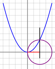 To solve the third-degree equation x3 + a2x = b Khayyám constructed the parabola x2 = ay, a circle with diameter b/a2, and a vertical line through the intersection point. The solution is given by the length of the horizontal line segment from the origin to the intersection of the vertical line and the x-axis.