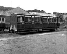 Four-wheeled carriages supplied for the opening of the line to Peel in 1873; these were close-coupled in pairs from the late 1880s. Each class of coach had a different internal layout. "A" class carriages were 17 ft 6 in (5.33 m) long and the remainder one foot (305 mm) shorter. Class "A" consisted of twelve first class carriages - eleven three-compartment carriages and one saloon. The "B" class consisted of 24 three-compartment third class carriages open above the seat backs. The "C" class (14 built) had two third class compartments and a brake compartment - one coach was later converted to a saloon. The "D" class consisted of a pair of composites arranged 3/1/3, the first class compartment being wider at the expense of the third class passengers. All these were later converted into bogie carriages by mounting pairs of bodies on bogie underframes supplied by the Metropolitan Carriage & Wagon Co. They became known as the "pairs" coaches and were later renumbered into the F.50-F.75 series, see below.