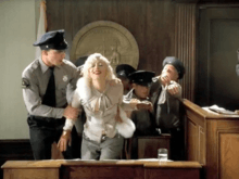The 1930s-style music video was directed by David LaChapelle.[28] In the song's music video, Stefani portrays a black widow whose look closely resembles that of actress Jean Harlow,[29] who is put on trial and sentenced to die for the murders of three men she knew, who are portrayed by the other members of the band. She kills the first man (Tom Dumont) with rat poison mixed into his dinner, the second (Tony Kanal) by running him over with her car, and the third (Adrian Young) by throwing her hair dryer into the bathtub to electrocute him. These scenes are intercut with moments of Stefani in court and being dragged to the gas chamber wearing a prison uniform where she is executed. The video ends with the three murder victims together presumably in the afterlife, laughing at her televised execution.