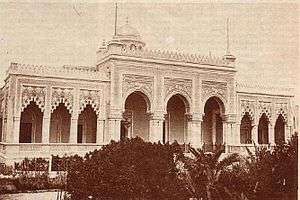 The largest Ottoman architectural monument in Benghazi is the late 19th-century Ottoman palace in El-Berka; built during the rule of Rashid Pasha II. The front elevation was completed in 1895, whilst the side sections were added later during Italian rule. The white and green structure houses 360 rooms; and is on a tract of land where Gamal Abdel Nasser Street meets al-Saqzali Street; south of the 28 March football stadium.