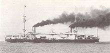 Enrico Dandolo took part in the annual 1888 fleet maneuvers, along with the ironclads Lepanto, Italia, Caio Duilio, and San Martino, one protected cruiser, four torpedo cruisers, and numerous smaller vessels. The maneuvers consisted of close-order drills and a simulated attack on and defense of La Spezia.[5] The ship served as the flagship of the 3rd Division of the Active Squadron during the 1893 fleet maneuvers, along with the ironclad Affondatore, the torpedo cruiser Goito, and four torpedo boats. During the maneuvers, which lasted from 6 August to 5 September, the ships of the Active Squadron simulated a French attack on the Italian fleet.[6] For the rest of the year, Enrico Dandolo was assigned to the 2nd Division of the Italian fleet, along with the protected cruiser Vesuvio and the torpedo cruiser Partenope.[7]