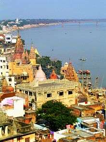 Geographically, the city of Varanasi is situated on the Ganges river, where two small, mostly dry rivers named Varana and Asi join the Ganges.[1][31] Metaphorically, the text adds, Varana is named as it wards off errors of organs (Varayati), and Nasi is named as it destroys the sins committed by one's organs (Nasayati).[30][31] Atri, after listening to this metaphorical answer, repeats his question, with "but where is this place of Avimuktam?" Yajnavalkya replies that Avimuktam is already within Atri, "where his nose and eye brows meet, for there is the place of the world of heaven and highest world of Brahman."[30][32] This Avimuktam is the "abode of Brahman".[33]