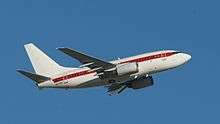 Currently, the Janet fleet consists of six Boeing 737-600s painted white with a prominent red cheatline. There are also five smaller executive turboprops (two Beechcraft 1900s and three Beechcraft 200Cs) painted white with less prominent blue trim stripes. The fleet is registered to the Department of the Air Force, while some earlier aircraft were registered to several civil aircraft leasing corporations.[4] Before the arrival of the 737-600s Janet operated Boeing 737-200s, some of which were modified from military T-43A aircraft. One of the 737-200s with registration N5177C in the 1980s was briefly based in Germany at Frankfurt International Airport (which was at the time also home to a USAF base, Rhein-Main Air Base), and was operated by Keyway Air Transport, which also appears to have been a US government operation with Keyway Air Transport merely being a front company. It was retired on March 6, 2009.[4] Together with the other 737-200s it was sent to AMARG at Davis–Monthan Air Force Base in Arizona for storage.[8]