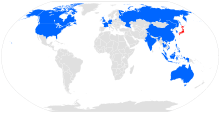 Japan began considering airline deregulation in the late 1970s, with the government announcing the abandoning of the 45/47 system in 1985.[32] In 1987 Japan Airlines was completely privatised, and the other two airlines in Japan, All Nippon Airways (ANA) and Japan Air System (JAS), were permitted to compete with JAL on domestic and international routes. Increased competition resulted in changes to the airline's corporate structure, and it was reorganised into three divisions: international passenger service, domestic passenger service, and cargo (including mail) service.[24][28]