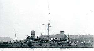 ![]() Kasuga at Sasebo after the Battle of Tsushima, May 1905 | |