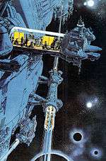 Outside of comics, Mézières' art has been particularly influential on science fiction and fantasy film. In particular, several commentators, such as Kim Thompson,[22] Jean-Philippe Guerand[23] and the newspaper Libération,[24] have noted certain similarities between the Valérian albums and the Star Wars film series. Both series are noted for the "lived-in" look given to their various settings and for the diverse alien creatures they feature. Mézières' response upon seeing Star Wars was that he was "dazzled, jealous... and furious!".[25] As a riposte, he produced an illustration for Pilote magazine in 1983 depicting the Star Wars characters Luke Skywalker and Leia Organa meeting Valérian and Laureline in a bar surrounded by a bestiary of alien creatures typical of that seen in both series. "Fancy meeting you here!" says Leia. "Oh, we've been hanging around here for a long time!" retorts Laureline.[26] Mézières has since been informed that Doug Chiang, design director on The Phantom Menace, kept a set of Valérian albums and Les Extras de Mézières in his library.[1]