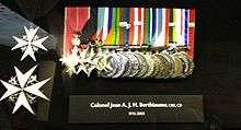 Colonel J. A. Berthiaume was invested into the Order of the British Empire in 1962 for his impressive organizational skills, initiative, linguistic ability, unmatched negotiating skills and his bravery during the ONUC mission in Congo.[33][34] He was the first Canadian officer to be given that recognition since the Korean War.
