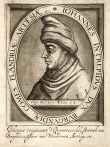 Before his accession to the Duchy of Burgundy, John was one of the principal leaders of the French forces sent to aid King Sigismund of Hungary in his war against Sultan Bayezid I. John fought in the Battle of Nicopolis of 25 September 1396 with such enthusiasm and bravery that he was given the cognomen Fearless (Sans-Peur). Despite his personal bravery, his impetuous leadership ended in disaster for the European expedition.[2] He was captured and did not recover his liberty until the next year after an enormous ransom was paid.[1]