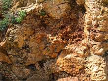 The highlands of Israel and the Palestinian territories are primarily underlain by sedimentary limestone, dolomite and dolomitic limestone. The stone quarried for building purposes, ranging in color from white to pink, yellow and tawny, is known collectively as Jerusalem stone. Soft Senonian limestone is found to the east of Jerusalem, and has long been used as an inexpensive building material.[3] Stone of the Cenomanian layers, known in Arabic as mizzi ahmar and mizzi yahudi, is far more durable than Senonian limestone, but is very hard and was expensive to quarry using pre-modern methods.[3] Turonian layers yield mizzi hilu or helu and meleke, the most prized building stones.[3] The thin layered mizzi hilu is easily quarried and worked. Meleke is soft and easy to chisel, yet hardens with exposure to the atmosphere and becomes highly durable.[3] It was used for the great public buildings of antiquity,[4] and for the construction of the Islamic period city walls and buildings.