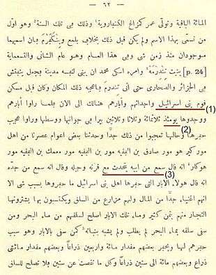 Manuscript C of the Tarikh al-fattash describes a community called the Bani Israeel that in 1402 CE existed in Tindirma, possessed 333 wells, and had seven leaders: