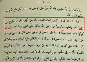 Page from the Tarikh es-Sudan which describes Za/Zuwa Alyaman coming from Yemen and settling in Kukiya.