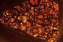 Oman is one of the rare places on Earth where a number of lunar meteorites have been found.[6] The largest strewn field of meteorites in the country is situated in Jiddat al-Harasis.[2] According to the Meteoritical Bulletin of the International Society for Meteorites and Planetary Science there are 3,116 recorded meteorites from Oman out of which 1,385 are in Jiddat al-Harasis area; 41 approved meteorites are classified as Lunar meteorites. The "Jiddat al Harasis 348" sample found in 2006, was recovered at Al Wusta in Jiddat weighing 18.4 g, a Lunar feldspathic fragmental breccia. It is described as a "complete stone with no remaining fusion crust".[7]