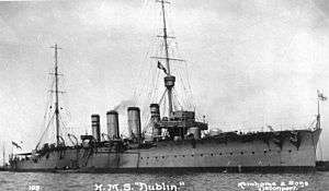 Kelly served in the First World War: on 4 August 1914 he was assigned, as commanding officer of HMS Dublin, by Sir Berkeley Milne to shadow the German squadron under Rear-Admiral Wilhelm Souchon, consisting of the cruiser SMS Breslau and the battlecruiser SMS Goeben.[9] Kelly did so, but eventually lost sight of the German ships.[9] Kelly's younger brother Howard, commanding the cruiser HMS Gloucester, also became involved in the subsequent chase.[10] HMS Dublin re-encountered the Germans at 1.30 a.m. on 6 August 1914 while sailing to join Rear-Admiral Ernest Troubridge's squadron, and passed news of the sighting to his brother and to Troubridge, before losing them again.[10] Howard Kelly continued to shadow the Germans, and at 8.30 p.m. Milne ordered HMS Dublin, sailing in company with two destroyers, to launch a torpedo attack that night.[11] Using the reports from HMS Gloucester of the Germans' speed and course, HMS Dublin and the destroyers took up position on the Germans' bow, and waited to intercept them. They hoped to make contact at 3.30 a.m. on the morning of 7 August 1914, but the British had been spotted by SMS Breslau, which warned SMS Goeben. The Germans passed unseen to starboard.[11]